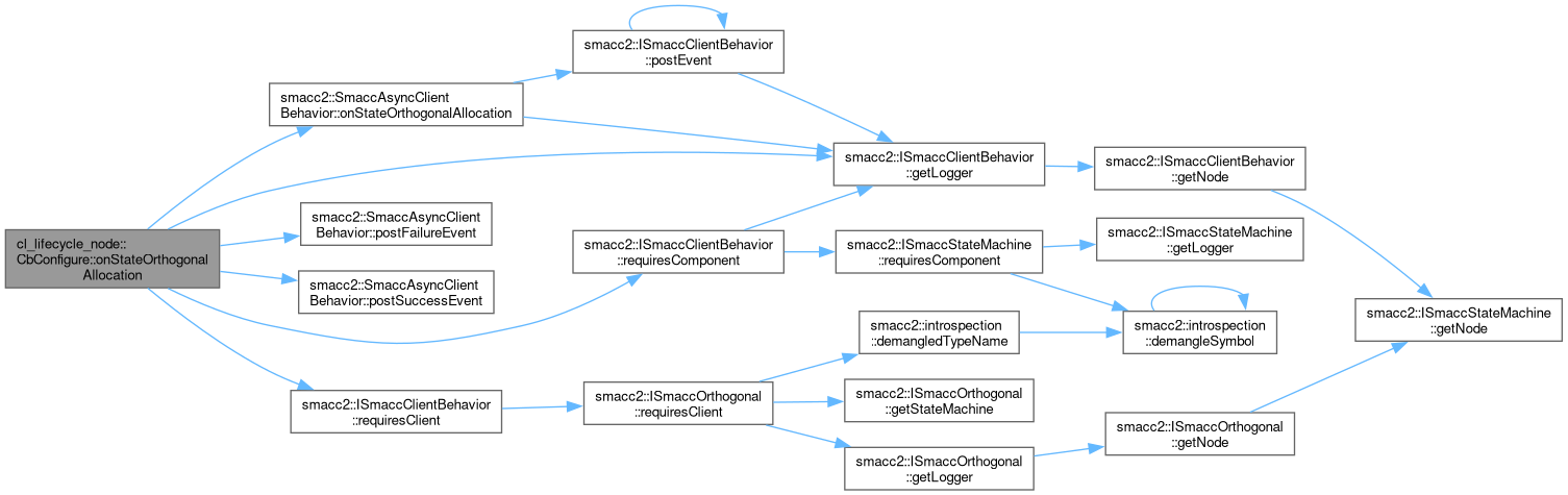 References eventMonitor_, smacc2::ISmaccClientBehavior::getLogger(), lifecycleNodeClient_, smacc2::SmaccAsyncClientBehavior::onStateOrthogonalAllocation(), cl_lifecycle_node::CpLifecycleEventMonitor::onTransitionOnConfigureError_, cl_lifecycle_node::CpLifecycleEventMonitor::onTransitionOnConfigureFailure_, cl_lifecycle_node::CpLifecycleEventMonitor::onTransitionOnConfigureSuccess_, smacc2::SmaccAsyncClientBehavior::postFailureEvent(), smacc2::SmaccAsyncClientBehavior::postSuccessEvent(), smacc2::ISmaccClientBehavior::requiresClient(), and smacc2::ISmaccClientBehavior::requiresComponent().