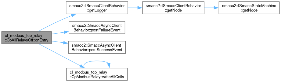 References smacc2::ISmaccClientBehavior::getLogger(), smacc2::SmaccAsyncClientBehavior::postFailureEvent(), smacc2::SmaccAsyncClientBehavior::postSuccessEvent(), relayComponent_, and cl_modbus_tcp_relay::CpModbusRelay::writeAllCoils().
