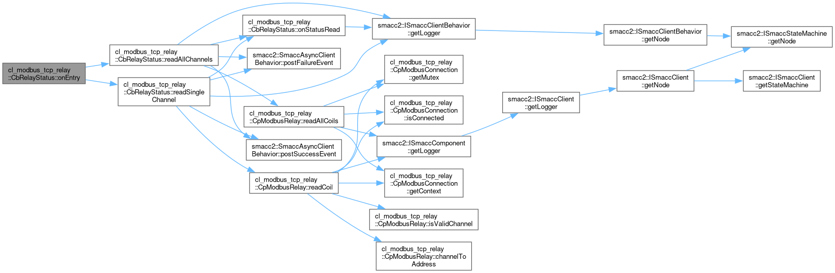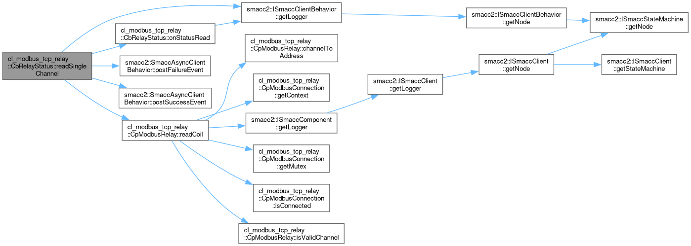 References channelStates_, smacc2::ISmaccClientBehavior::getLogger(), onStatusRead(), smacc2::SmaccAsyncClientBehavior::postFailureEvent(), smacc2::SmaccAsyncClientBehavior::postSuccessEvent(), cl_modbus_tcp_relay::CpModbusRelay::readCoil(), and relayComponent_.