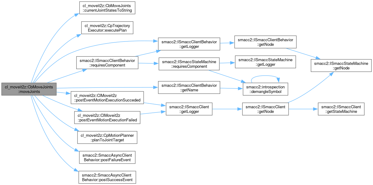 References currentJointStatesToString(), cl_moveit2z::CpTrajectoryExecutor::executePlan(), smacc2::ISmaccClientBehavior::getLogger(), smacc2::ISmaccClientBehavior::getName(), jointValueTarget_, cl_moveit2z::ExecutionOptions::maxVelocityScaling, cl_moveit2z::PlanningOptions::maxVelocityScaling, movegroupClient_, cl_moveit2z::CpMotionPlanner::planToJointTarget(), cl_moveit2z::ClMoveit2z::postEventMotionExecutionFailed(), cl_moveit2z::ClMoveit2z::postEventMotionExecutionSucceded(), smacc2::SmaccAsyncClientBehavior::postFailureEvent(), smacc2::SmaccAsyncClientBehavior::postSuccessEvent(), smacc2::ISmaccClientBehavior::requiresComponent(), scalingFactor_, smacc2::SOFT, and cl_moveit2z::ExecutionOptions::trajectoryName.