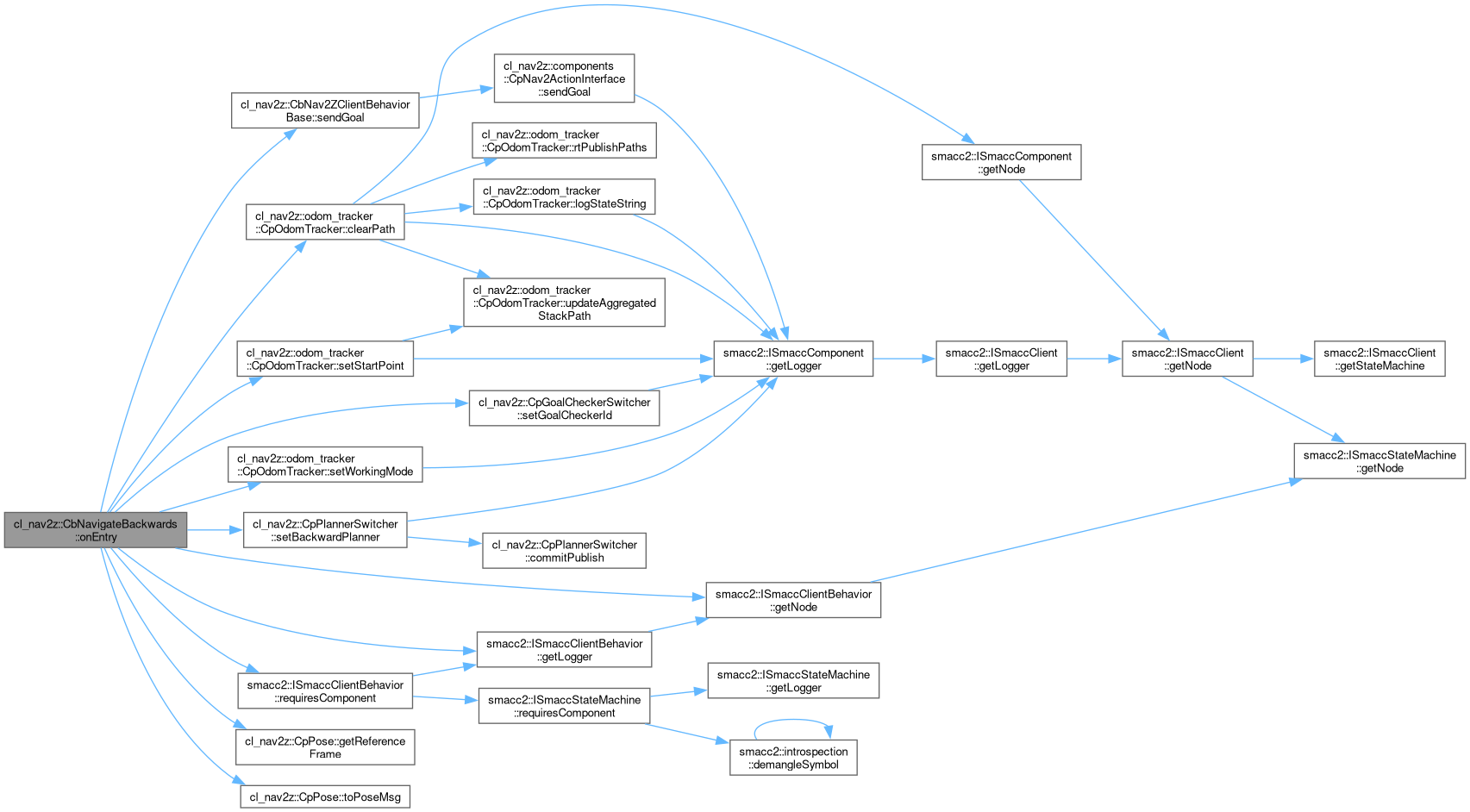 References backwardDistance, cl_nav2z::odom_tracker::CpOdomTracker::clearPath(), smacc2::ISmaccClientBehavior::getLogger(), smacc2::ISmaccClientBehavior::getNode(), cl_nav2z::CpPose::getReferenceFrame(), odomTracker_, smacc2::ISmaccClientBehavior::requiresComponent(), cl_nav2z::CbNav2ZClientBehaviorBase::sendGoal(), cl_nav2z::CpPlannerSwitcher::setBackwardPlanner(), cl_nav2z::CpGoalCheckerSwitcher::setGoalCheckerId(), cl_nav2z::odom_tracker::CpOdomTracker::setStartPoint(), cl_nav2z::odom_tracker::CpOdomTracker::setWorkingMode(), and cl_nav2z::CpPose::toPoseMsg().