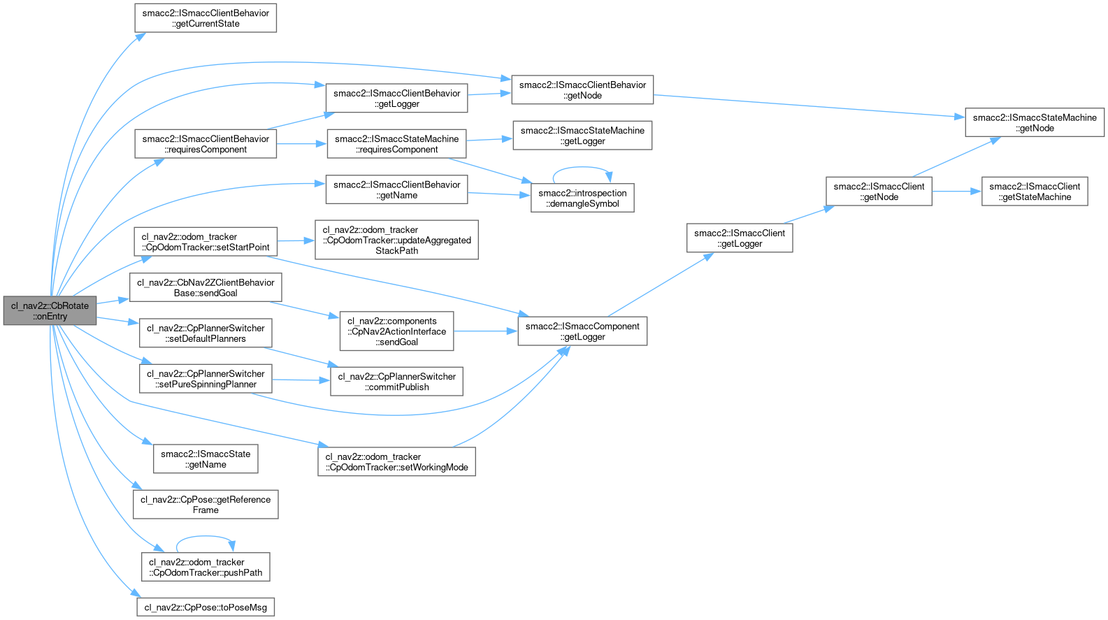 References smacc2::ISmaccClientBehavior::getCurrentState(), smacc2::ISmaccClientBehavior::getLogger(), smacc2::ISmaccClientBehavior::getName(), smacc2::ISmaccState::getName(), smacc2::ISmaccClientBehavior::getNode(), cl_nav2z::CpPose::getReferenceFrame(), cl_nav2z::PureSpinning, cl_nav2z::odom_tracker::CpOdomTracker::pushPath(), cl_nav2z::odom_tracker::RECORD_PATH, smacc2::ISmaccClientBehavior::requiresComponent(), rotateDegree, cl_nav2z::CbNav2ZClientBehaviorBase::sendGoal(), cl_nav2z::CpPlannerSwitcher::setDefaultPlanners(), cl_nav2z::CpPlannerSwitcher::setPureSpinningPlanner(), cl_nav2z::odom_tracker::CpOdomTracker::setStartPoint(), cl_nav2z::odom_tracker::CpOdomTracker::setWorkingMode(), spinningPlanner, and cl_nav2z::CpPose::toPoseMsg().