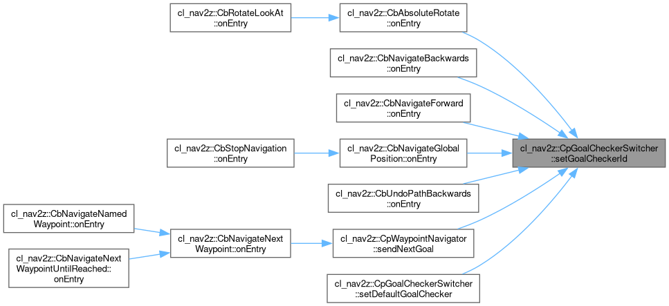Referenced by cl_nav2z::CbAbsoluteRotate::onEntry(), cl_nav2z::CbNavigateBackwards::onEntry(), cl_nav2z::CbNavigateForward::onEntry(), cl_nav2z::CbNavigateGlobalPosition::onEntry(), cl_nav2z::CbUndoPathBackwards::onEntry(), cl_nav2z::CpWaypointNavigator::sendNextGoal(), and setDefaultGoalChecker().