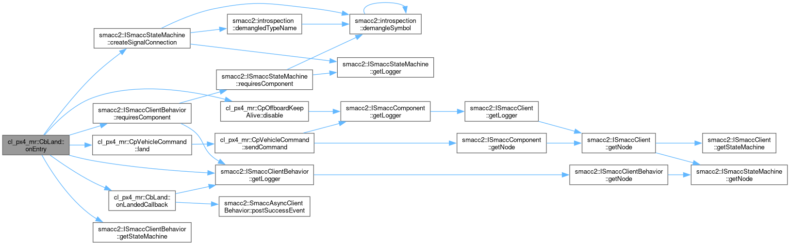 References smacc2::ISmaccStateMachine::createSignalConnection(), cl_px4_mr::CpOffboardKeepAlive::disable(), smacc2::ISmaccClientBehavior::getLogger(), smacc2::ISmaccClientBehavior::getStateMachine(), cl_px4_mr::CpVehicleCommand::land(), offboardKeepAlive_, cl_px4_mr::CpVehicleStatus::onDisarmed_, onLandedCallback(), smacc2::ISmaccClientBehavior::requiresComponent(), vehicleCommand_, and vehicleStatus_.