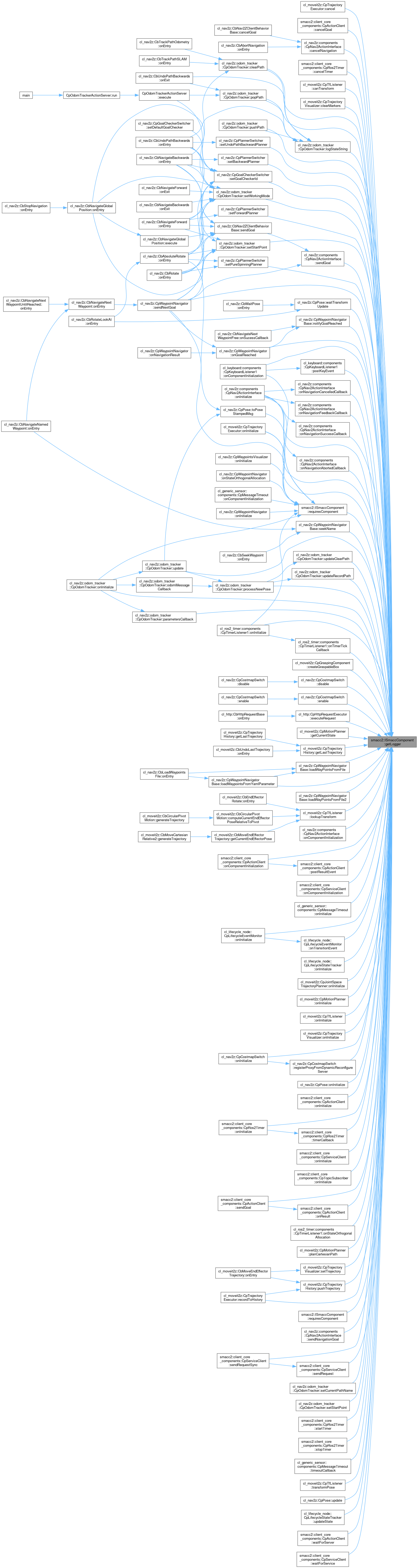 Referenced by cl_moveit2z::CpTrajectoryExecutor::cancel(), smacc2::client_core_components::CpActionClient< ActionType >::cancelGoal(), cl_nav2z::components::CpNav2ActionInterface::cancelNavigation(), smacc2::client_core_components::CpRos2Timer::cancelTimer(), cl_moveit2z::CpTfListener::canTransform(), cl_moveit2z::CpTrajectoryVisualizer::clearMarkers(), cl_nav2z::odom_tracker::CpOdomTracker::clearPath(), cl_moveit2z::CpGraspingComponent::createGraspableBox(), cl_nav2z::CpCostmapSwitch::disable(), cl_nav2z::CpCostmapSwitch::enable(), cl_http::CpHttpRequestExecutor::executeRequest(), cl_moveit2z::CpMotionPlanner::getCurrentState(), cl_moveit2z::CpTrajectoryHistory::getLastTrajectory(), cl_nav2z::CpWaypointNavigatorBase::loadWayPointsFromFile(), cl_nav2z::CpWaypointNavigatorBase::loadWayPointsFromFile2(), cl_nav2z::CpWaypointNavigatorBase::loadWaypointsFromYamlParameter(), cl_nav2z::odom_tracker::CpOdomTracker::logStateString(), cl_moveit2z::CpTfListener::lookupTransform(), cl_nav2z::CpWaypointNavigatorBase::notifyGoalReached(), cl_keyboard::components::CpKeyboardListener1::onComponentInitialization(), cl_nav2z::components::CpNav2ActionInterface::onComponentInitialization(), smacc2::client_core_components::CpActionClient< ActionType >::onComponentInitialization(), smacc2::client_core_components::CpServiceClient< ServiceType >::onComponentInitialization(), cl_nav2z::CpWaypointNavigator::onGoalReached(), cl_generic_sensor::components::CpMessageTimeout< MessageType >::onInitialize(), cl_lifecycle_node::CpLifecycleEventMonitor::onInitialize(), cl_lifecycle_node::CpLifecycleStateTracker::onInitialize(), cl_moveit2z::CpJointSpaceTrajectoryPlanner::onInitialize(), cl_moveit2z::CpMotionPlanner::onInitialize(), cl_moveit2z::CpTfListener::onInitialize(), cl_moveit2z::CpTrajectoryExecutor::onInitialize(), cl_moveit2z::CpTrajectoryVisualizer::onInitialize(), cl_nav2z::components::CpNav2ActionInterface::onInitialize(), cl_nav2z::CpCostmapSwitch::onInitialize(), cl_nav2z::CpPose::onInitialize(), cl_nav2z::odom_tracker::CpOdomTracker::onInitialize(), cl_ros2_timer::components::CpTimerListener1::onInitialize(), smacc2::client_core_components::CpActionClient< ActionType >::onInitialize(), smacc2::client_core_components::CpRos2Timer::onInitialize(), smacc2::client_core_components::CpServiceClient< ServiceType >::onInitialize(), smacc2::client_core_components::CpTopicSubscriber< MessageType >::onInitialize(), cl_nav2z::components::CpNav2ActionInterface::onNavigationAbortedCallback(), cl_nav2z::components::CpNav2ActionInterface::onNavigationCancelledCallback(), cl_nav2z::components::CpNav2ActionInterface::onNavigationFeedbackCallback(), cl_nav2z::components::CpNav2ActionInterface::onNavigationSuccessCallback(), smacc2::client_core_components::CpActionClient< ActionType >::onResult(), cl_ros2_timer::components::CpTimerListener1::onStateOrthogonalAllocation(), cl_ros2_timer::components::CpTimerListener1::onTimerTickCallback(), cl_lifecycle_node::CpLifecycleEventMonitor::onTransitionEvent(), cl_nav2z::odom_tracker::CpOdomTracker::parametersCallback(), cl_moveit2z::CpMotionPlanner::planCartesianPath(), cl_nav2z::odom_tracker::CpOdomTracker::popPath(), cl_keyboard::components::CpKeyboardListener1::postKeyEvent(), smacc2::client_core_components::CpActionClient< ActionType >::postResultEvent(), cl_nav2z::odom_tracker::CpOdomTracker::processNewPose(), cl_nav2z::odom_tracker::CpOdomTracker::pushPath(), cl_moveit2z::CpTrajectoryHistory::pushTrajectory(), cl_moveit2z::CpTrajectoryExecutor::recordToHistory(), cl_nav2z::CpCostmapSwitch::registerProxyFromDynamicReconfigureServer(), requiresComponent(), requiresComponent(), cl_nav2z::CpWaypointNavigatorBase::seekName(), cl_nav2z::components::CpNav2ActionInterface::sendGoal(), smacc2::client_core_components::CpActionClient< ActionType >::sendGoal(), cl_nav2z::components::CpNav2ActionInterface::sendNavigationGoal(), cl_nav2z::CpWaypointNavigator::sendNextGoal(), smacc2::client_core_components::CpServiceClient< ServiceType >::sendRequest(), smacc2::client_core_components::CpServiceClient< ServiceType >::sendRequestSync(), cl_nav2z::CpPlannerSwitcher::setBackwardPlanner(), cl_nav2z::odom_tracker::CpOdomTracker::setCurrentPathName(), cl_nav2z::CpPlannerSwitcher::setForwardPlanner(), cl_nav2z::CpGoalCheckerSwitcher::setGoalCheckerId(), cl_nav2z::CpPlannerSwitcher::setPureSpinningPlanner(), cl_nav2z::odom_tracker::CpOdomTracker::setStartPoint(), cl_nav2z::odom_tracker::CpOdomTracker::setStartPoint(), cl_moveit2z::CpTrajectoryVisualizer::setTrajectory(), cl_nav2z::CpPlannerSwitcher::setUndoPathBackwardPlanner(), cl_nav2z::odom_tracker::CpOdomTracker::setWorkingMode(), smacc2::client_core_components::CpRos2Timer::startTimer(), smacc2::client_core_components::CpRos2Timer::stopTimer(), cl_generic_sensor::components::CpMessageTimeout< MessageType >::timeoutCallback(), smacc2::client_core_components::CpRos2Timer::timerCallback(), cl_nav2z::CpPose::toPoseStampedMsg(), cl_moveit2z::CpTfListener::transformPose(), cl_nav2z::CpPose::update(), cl_nav2z::odom_tracker::CpOdomTracker::update(), cl_nav2z::odom_tracker::CpOdomTracker::updateClearPath(), cl_nav2z::odom_tracker::CpOdomTracker::updateRecordPath(), cl_lifecycle_node::CpLifecycleStateTracker::updateState(), smacc2::client_core_components::CpActionClient< ActionType >::waitForServer(), smacc2::client_core_components::CpServiceClient< ServiceType >::waitForService(), and cl_nav2z::CpPose::waitTransformUpdate().