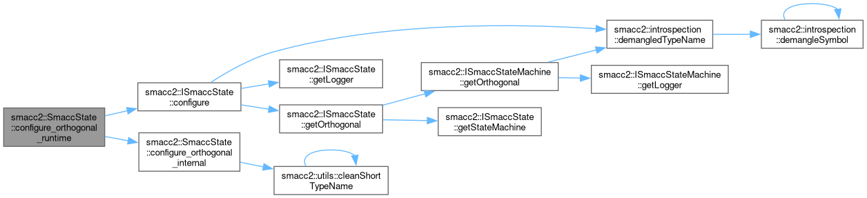 References smacc2::utils::cleanShortTypeName(), smacc2::introspection::demangleSymbol(), smacc2::introspection::SmaccStateInfo::eventGeneratorsInfo, smacc2::ISmaccState::getLogger(), smacc2::SmaccState< MostDerived, Context, InnerInitial, historyMode >::getStateMachine(), smacc2::ISmaccStateMachine::notifyOnRuntimeConfigurationFinished(), smacc2::ISmaccStateMachine::notifyOnRuntimeConfigured(), smacc2::ISmaccStateMachine::notifyOnStateEntryEnd(), smacc2::ISmaccStateMachine::notifyOnStateEntryStart(), smacc2::SmaccState< MostDerived, Context, InnerInitial, historyMode >::onEntry(), smacc2::SmaccState< MostDerived, Context, InnerInitial, historyMode >::runtimeConfigure(), smacc2_state_onRuntimeConfigure_end, smacc2_state_onRuntimeConfigure_start, STATE_NAME, smacc2::introspection::SmaccStateInfo::stateReactorsInfo, and smacc2::introspection::SmaccStateInfo::staticBehaviorInfo.