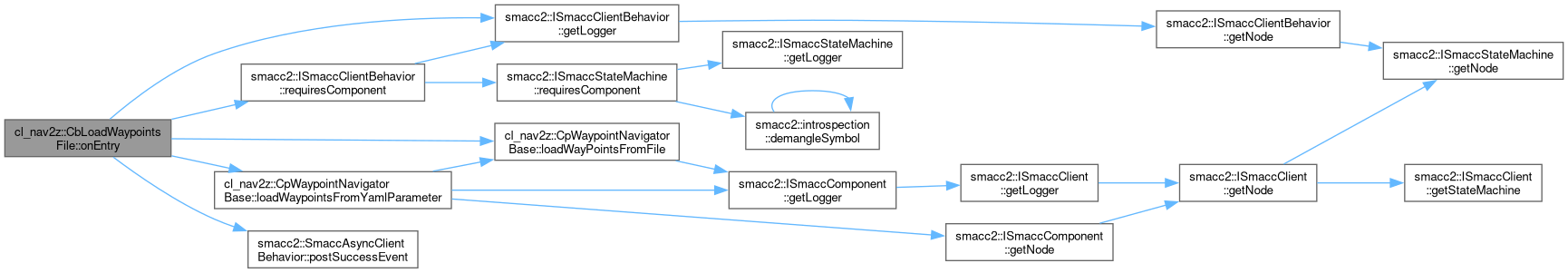 References cl_nav2z::CpWaypointNavigatorBase::currentWaypoint_, filepath_, smacc2::ISmaccClientBehavior::getLogger(), cl_nav2z::CpWaypointNavigatorBase::loadWayPointsFromFile(), cl_nav2z::CpWaypointNavigatorBase::loadWaypointsFromYamlParameter(), packageNamespace_, parameterName_, smacc2::SmaccAsyncClientBehavior::postSuccessEvent(), smacc2::ISmaccClientBehavior::requiresComponent(), and waypointsNavigator_.